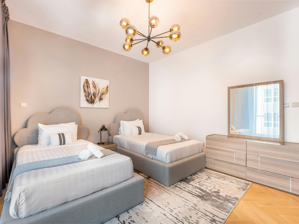 Emphasize key amenities (fast Wi‑Fi, AC, parking, commuting time to stadium) and local attractions (fan zones, restaurants). High-quality photos are crucial – showcase a clean, well-decorated living room and spacious bedroom (see image example) to attract clicks and bookings.